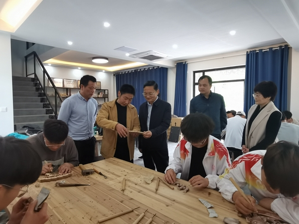 儀式前,王進(jìn)與徽派木雕非遺傳承人汪德洪進(jìn)行了深入交流,了解該基地在人才培養(yǎng)、技藝傳承、教學(xué)改革等方面的情況,并要求建筑工程學(xué)院充分發(fā)揮大師工作室在內(nèi)涵建設(shè)、師資培養(yǎng)、產(chǎn)教融合、社會(huì)服務(wù)上的優(yōu)勢,創(chuàng)新協(xié)同育人新模式,在實(shí)訓(xùn)教學(xué)中融入工匠精神、勞動(dòng)教育,為培養(yǎng)技能人才和弘揚(yáng)民族技藝提供支撐。