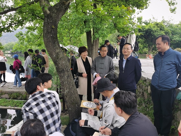 王進(jìn)一行還看望了正在宏村寫生實(shí)訓(xùn)的20級(jí)建筑裝飾工程技術(shù)專業(yè)師生,勉勵(lì)大家刻苦練習(xí)繪畫寫生技法,充分學(xué)習(xí)徽派建筑文化,體會(huì)中國古建筑精妙技藝,樹立技能報(bào)國的理想。同學(xué)們備受鼓舞,紛紛表示要努力學(xué)習(xí),掌握本領(lǐng),爭做堪當(dāng)民族復(fù)興大任的時(shí)代新人。(文、圖:張賽 審稿:陳月萍)