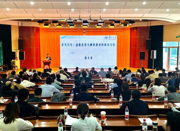 薛小榮以《建黨百年:道路選擇與制度建設(shè)的成功經(jīng)驗》為題,結(jié)合大量歷史事件,用生動通俗易懂的語言精辟透徹的講解了,新中國從“站起來”、“富起來”、“強起來”三個時代制度的選擇。生動闡述中國共產(chǎn)黨從國情出發(fā),三次歷史性的制度調(diào)整與功能優(yōu)化,既簡要概括了中國近代以來飛躍的歷史進程,又深刻揭示了中國特色社會主義不斷開辟發(fā)展新境界的歷史意義。報告深入淺出,內(nèi)容豐富,進一步增強了參會人員對中國共產(chǎn)黨人初心和使命的情感認同、理性認同、實踐認同,對黨的奮斗歷程和制度建設(shè)有了更加清晰的認識,在重溫黨的歷史過程中得到了新的教育和啟迪。(文:胡強圣 審稿:姚詠)