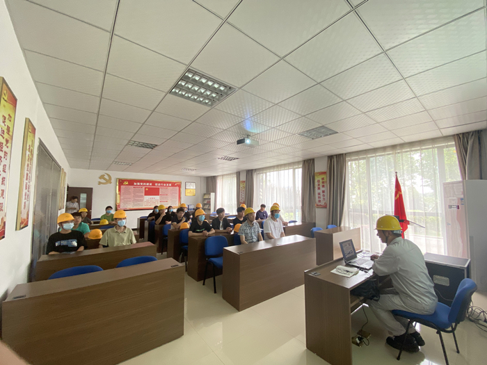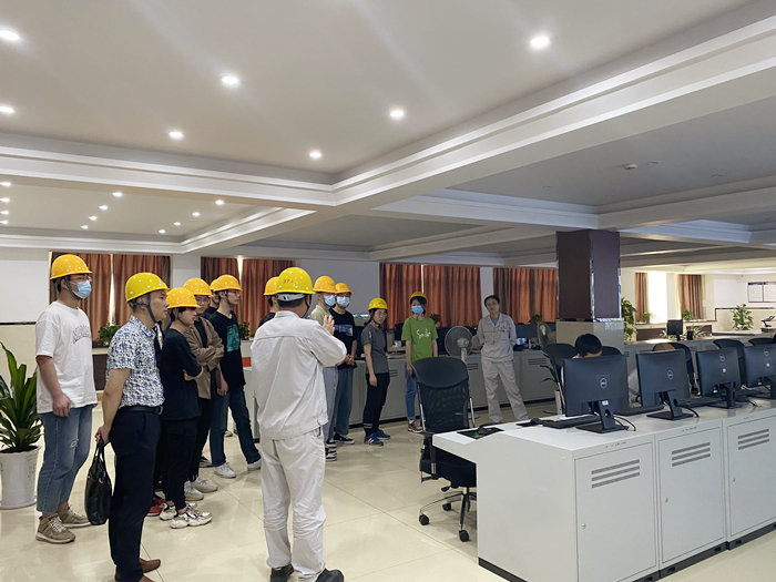 企業(yè)部長劉曉東詳細(xì)介紹了該公司基本概況、企業(yè)發(fā)展成果。還著重強(qiáng)調(diào)了化工企業(yè)安全生產(chǎn)注意事項和標(biāo)準(zhǔn),講解了危險化學(xué)品相關(guān)知識,明確了參觀過程中的注意事項,介紹了生產(chǎn)園區(qū)的化工生產(chǎn)環(huán)節(jié)與各種設(shè)備。同時,中控室工作人員現(xiàn)場向?qū)W生展示中控系統(tǒng)作為生產(chǎn)環(huán)節(jié)“大腦”的重要作用及運(yùn)行原理。劉曉東與學(xué)生展開問答與討論,現(xiàn)場氛圍濃厚。