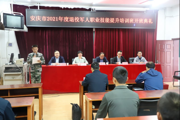 2021年10月13日上午,安慶技師學(xué)院在教學(xué)樓階梯教室舉行安慶市2021年度退役軍人職業(yè)技能提升培訓(xùn)班開(kāi)班典禮。此次培訓(xùn)旨在為全市退役軍人提供精準(zhǔn)高效的職業(yè)技能培訓(xùn),適應(yīng)地方工作需要,更好融入社會(huì)發(fā)展。共有38名退役軍人共同參加了本期培訓(xùn)班。