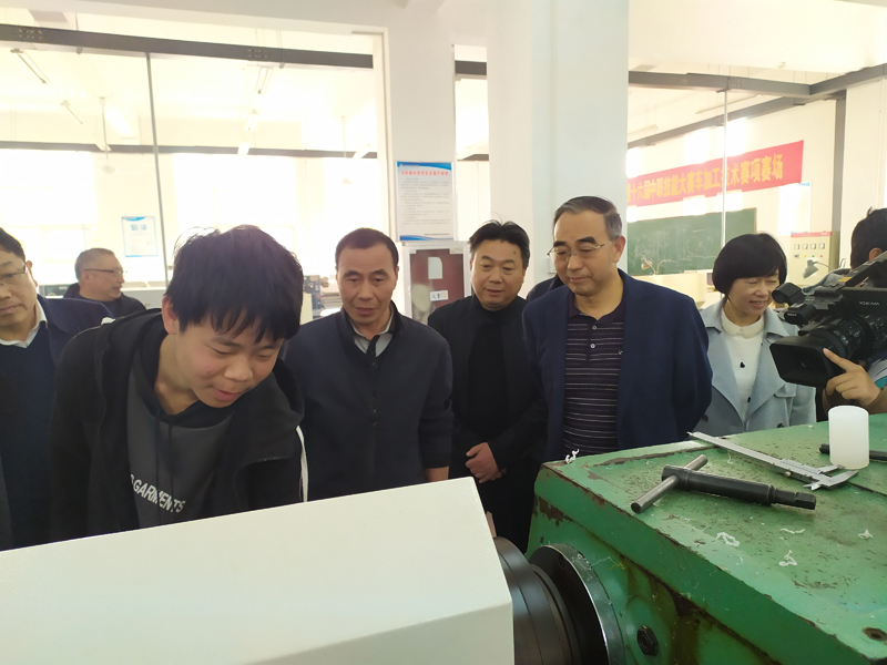 郭玉晟一行實地察看校園環(huán)境,邊走邊聽取了學校負責人有關工作匯報,了解了醫(yī)藥健康實訓基地項目規(guī)劃建設有關情況,并深入教學實訓基地,詳細了解學校辦學規(guī)模、基礎設施、專業(yè)設置、實習實訓、招生就業(yè)、疫情防控等情況。