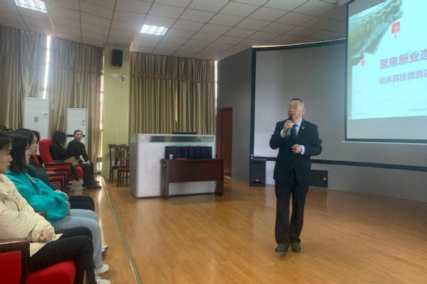 梁總從定義新業(yè)態(tài)、聚焦安慶酒店業(yè)發(fā)展以及如何培養(yǎng)新型酒店管理服務(wù)人才等方面展開講述,教育學(xué)生從講禮貌、講禮節(jié)、講禮儀做起,通過修煉技能、強(qiáng)健體魄、涵養(yǎng)德行,完美履行酒店人的服務(wù)職責(zé),進(jìn)而積累管理經(jīng)驗(yàn),建好團(tuán)隊(duì),帶好團(tuán)隊(duì),成為現(xiàn)代酒店業(yè)新型高級(jí)管理服務(wù)人才。