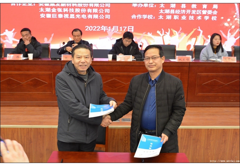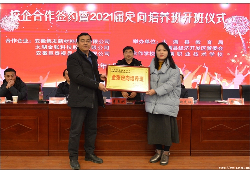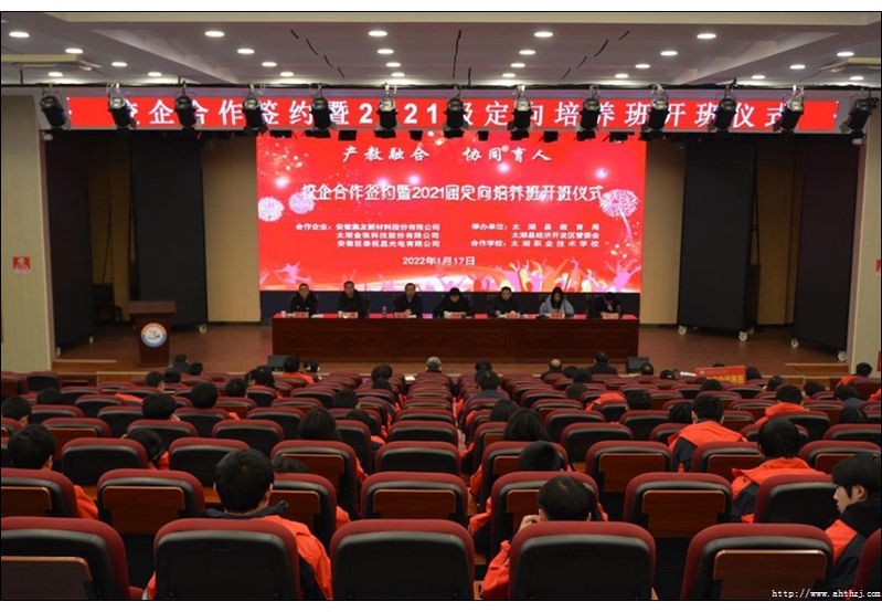 為進(jìn)一步推進(jìn)產(chǎn)教融合,加強(qiáng)校企合作,提升技能型人才培養(yǎng)質(zhì)量,增強(qiáng)職業(yè)教育適應(yīng)性,1月17日上午,太湖縣教育局、縣經(jīng)濟(jì)開發(fā)區(qū)管委會(huì)在太湖職業(yè)技術(shù)學(xué)校科研樓多功能廳舉行校企合作簽約暨2021級(jí)定向培養(yǎng)班開班儀式。