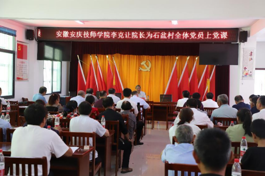 在石盆村大會議室,李院長以“發(fā)揮黨員示范作用,推進(jìn)石盆鄉(xiāng)村振興”為主題,為該村黨員干部、群眾代表、結(jié)對幫扶干部、駐村工作隊員等50余人上了一堂生動的黨課。他首先從理論高度闡述了鄉(xiāng)村振興工作的重大意義;繼而結(jié)合村情,用通俗易懂的語言,深入剖析石盆村在推進(jìn)鄉(xiāng)村振興工作中“怎樣做”、“做什么”、“誰來做”等方面的問題。在闡述“怎樣做”時,他強調(diào)石盆村要以產(chǎn)業(yè)項目為載體,要多研究政策,要結(jié)合自身的條件和特點超前謀劃、同時也要循序漸進(jìn)、日積月累的做。黨員干部尤其是村兩委、幫扶工作隊都要有“功成不必在我,功成一定有我”的精神。在闡述“做什么”時,李院長將村兩委的工作重心形象地概括為兩點:掙錢與花錢。他著重指出,掙錢方面,一是依靠項目,二是發(fā)展村集體經(jīng)濟(jì),其中很重要的一點就是要提高農(nóng)民的務(wù)工技能,石盆村年輕學(xué)子可以到技師學(xué)院來學(xué)習(xí)技術(shù)、提升掙錢本領(lǐng)。在花錢方面,一定要將錢用在刀刃上,讓廣大村民有真切的獲得感,同時在鄉(xiāng)風(fēng)民俗建設(shè)上,要大力提倡勤儉節(jié)約、移風(fēng)易俗、健康娛樂。在闡述“誰來做”時,他指出要依靠當(dāng)?shù)攸h委,在鄉(xiāng)村振興工作中,一個黨員就是一面旗幟,要發(fā)揮領(lǐng)頭羊的作用,體現(xiàn)黨的先進(jìn)性,發(fā)展經(jīng)濟(jì)要對黨員能人大戶的傳幫帶寄于厚望。李院長對駐村工作隊提出特別要求,要求他們堅守“三心”,一是安心,駐村如駐軍;二是真心,真心為民拿出實招;三是凝心,真幫助,辦實事,提升水平,實走訪,防返貧,穩(wěn)增收。