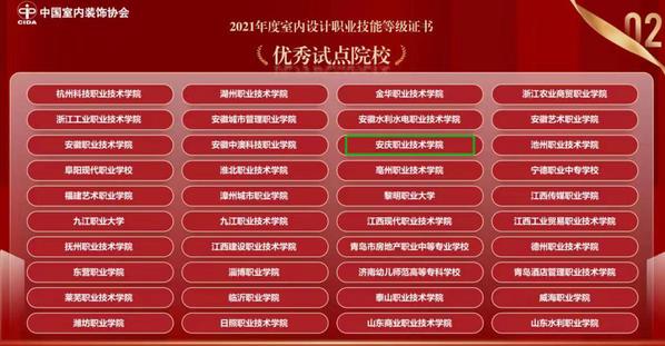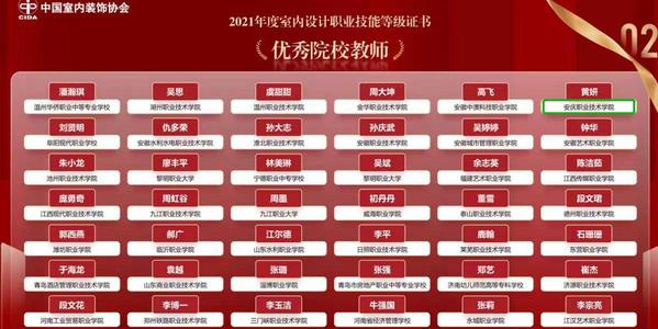 自接到比賽通知后,安慶職院高度重視,積極組建指導(dǎo)老師團隊,選拔參賽學(xué)生,制定訓(xùn)練方案,在比賽過程中,同學(xué)們充分發(fā)揮自己扎實的專業(yè)技能,攻堅克難、沉著應(yīng)戰(zhàn),團結(jié)協(xié)作,最終取得了全國三等獎的好成績。比賽結(jié)束后,中國室內(nèi)裝飾協(xié)會對2021年度“1+X(室內(nèi)設(shè)計)”證書試點工作中表現(xiàn)突出的優(yōu)秀院校代表和教師個人進行了表彰。學(xué)校在2021至2022學(xué)年的室內(nèi)設(shè)計“1+X”證書考核中,初級通過率達到96%,中級通過率達到100%,高級通過率達到100%,在此次表彰中獲得2021年度“1+X(室內(nèi)設(shè)計)”證書優(yōu)秀試點院校,指導(dǎo)老師黃妍獲“優(yōu)秀院校教師”稱號。