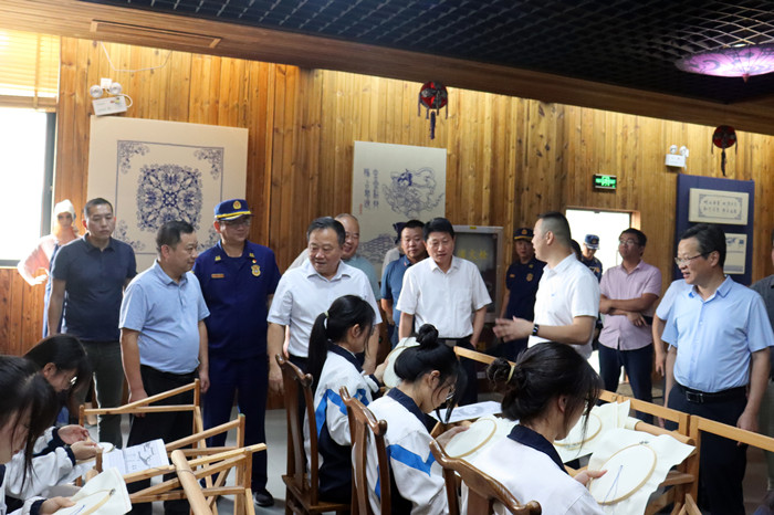 宋國權到校后,實地考察了該校國家非遺望江挑花保護與傳承基地,望江縣勞模工匠教育基地、“同心筑夢”黨建和統(tǒng)戰(zhàn)基地、黨史學習教育基地、校史陳列室等場所。