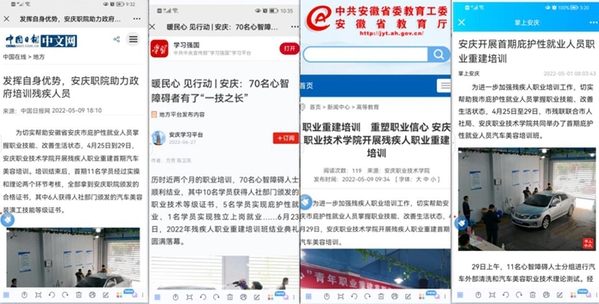 安慶職院作為省、市兩級(jí)殘疾人技能培訓(xùn)基地,一直以高度社會(huì)責(zé)任感開(kāi)展殘疾人職業(yè)技能培訓(xùn),致力于服務(wù)好每一位社會(huì)殘障人士。幫助他們掌握了一定的職業(yè)技能,增強(qiáng)他們熱愛(ài)生活、融入社會(huì)的信心,用熱情給大量殘疾人家庭帶來(lái)了活力與希望。開(kāi)展“殘疾人職業(yè)重建”培訓(xùn)項(xiàng)目以來(lái),面向安慶市心智障礙人士提供了諸如面點(diǎn)、插花、烘焙、汽車美容、短視頻制作等技能培訓(xùn),還針對(duì)他們自卑、焦躁等負(fù)面情緒,開(kāi)設(shè)了藝術(shù)調(diào)理類等心理輔導(dǎo)課程,幫助他們調(diào)節(jié)身心。僅今年上半年就有11名學(xué)員通過(guò)汽車美容和烘焙技能考核,獲得人社部門頒發(fā)的職業(yè)資格證書(shū),并推薦到愛(ài)心企業(yè)實(shí)現(xiàn)就業(yè)。先后被中國(guó)日?qǐng)?bào)、學(xué)習(xí)強(qiáng)國(guó)、安徽省教育廳、安徽省殘聯(lián)等單位報(bào)道。