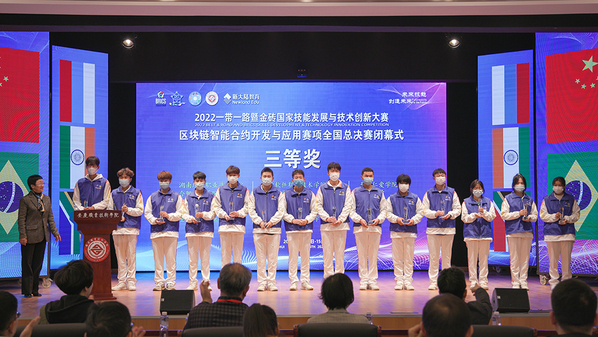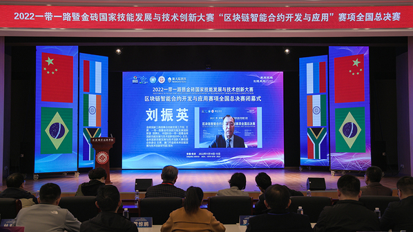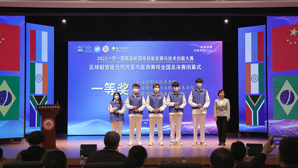 11月15日,2022一帶一路暨金磚國家技能發(fā)展與技術(shù)創(chuàng)新大賽“區(qū)塊鏈智能合約與開發(fā)”賽項全國總決賽在安慶職業(yè)技術(shù)學(xué)院圓滿落幕。安慶市委常委、宣傳部部長王愛武,大賽裁判長胡學(xué)鋼,安慶職業(yè)技術(shù)學(xué)院黨委副書記、校長畢明生,新大陸集團品牌發(fā)展部總監(jiān)王曉,大賽專家組組長董甲東,大賽監(jiān)督仲裁委沙有闖,安慶職業(yè)技術(shù)學(xué)院黨委委員高潤霞出席。新大陸科技集團安徽辦事處負責(zé)人,信息技術(shù)學(xué)院主要負責(zé)人參加。