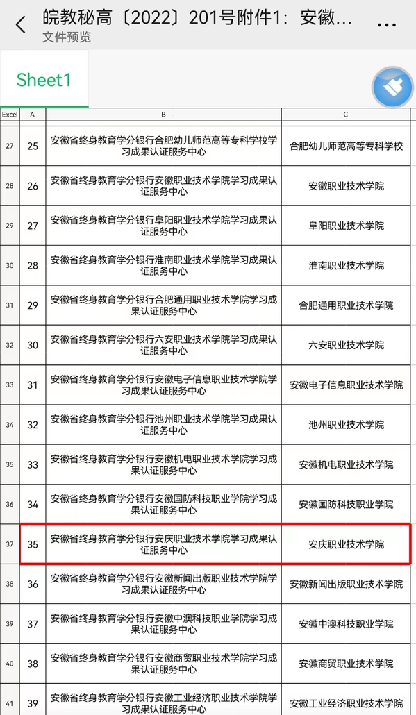 近日,省教育廳公布了首批安徽省終身教育學(xué)分銀行高校學(xué)習(xí)成果認(rèn)證服務(wù)中心名單,安慶職業(yè)技術(shù)學(xué)院成功入選。
