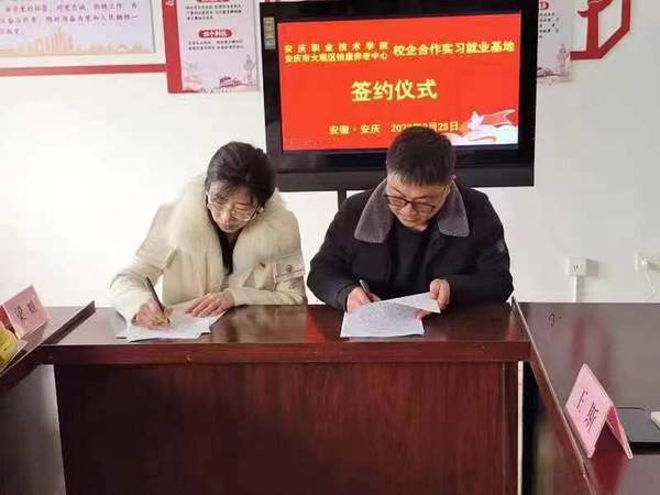 隨后,校企雙方共同簽署了《校企合作實習就業(yè)教研基地合作協(xié)議書》,校企雙方領導共同為“安慶職業(yè)技術(shù)學院校外實習就業(yè)基地”揭牌。