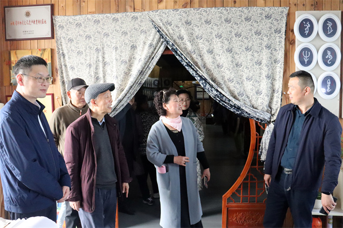 許厚今一行參觀考察了該校國家非遺望江挑花保護與傳承基地,詳細了解望江挑花保護與傳承及產(chǎn)業(yè)發(fā)展情況。在隨后召開的非遺文化傳承調(diào)研座談會上,高炬對許厚今一行到望江縣參觀考察表示了誠摯歡迎,希望能夠積極宣傳推介望江挑花,同時對望江文化發(fā)展多提寶貴意見和建議。吳燦簡要介紹了學(xué)校發(fā)展歷程,就國家非遺望江挑花保護與傳承現(xiàn)狀、市場化運作規(guī)劃等情況作了匯報。當聽聞該校近年來先后獲批為全國中小學(xué)中華優(yōu)秀傳統(tǒng)文化傳承學(xué)校,榮獲省級“雙比雙爭”先進社會組織黨支部,對口高考本科升學(xué)率穩(wěn)居全市第一,高標準通過安徽省中職學(xué)校辦學(xué)水平B類評估給予高度贊揚并表示了祝賀。