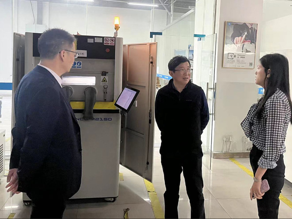 在企業(yè)負(fù)責(zé)人的引導(dǎo)下,一行四人走進(jìn)加工車間,了解到企業(yè)生產(chǎn)現(xiàn)狀、制作工藝以及3D打印成品的流程等細(xì)節(jié)。并與企業(yè)負(fù)責(zé)人面對(duì)面,在人才培養(yǎng)、專業(yè)建設(shè)、實(shí)習(xí)實(shí)訓(xùn)等方面進(jìn)行交流,雙就進(jìn)一步強(qiáng)化校企合作打成了初步意見。