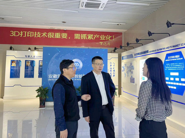 在安徽筑夢(mèng)三維智能制造研究院,一行四人參觀了企業(yè)展廳,了解了該研究院發(fā)展歷程、核心技術(shù)以及目前發(fā)展的強(qiáng)勁勢(shì)頭。