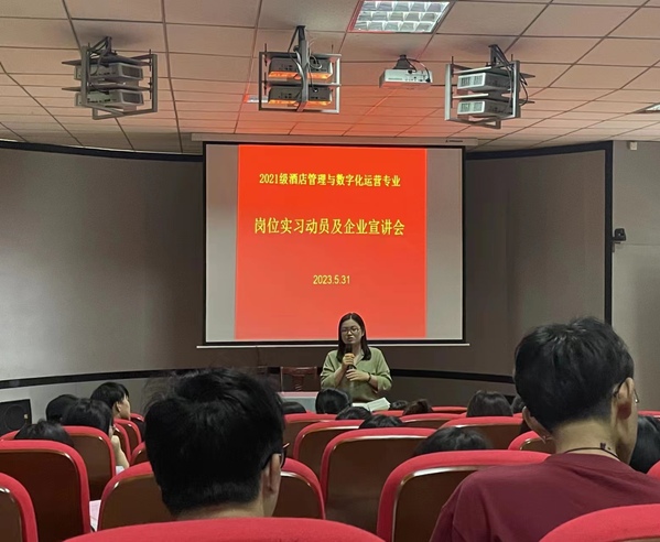 為引導(dǎo)學(xué)生做好實(shí)習(xí)前的各項(xiàng)準(zhǔn)備工作,扎實(shí)推進(jìn)2021級(jí)學(xué)生崗位實(shí)習(xí)工作順利、有序開展。5月31日和6月1日安慶職業(yè)技術(shù)學(xué)院管理服務(wù)學(xué)院酒店管理與數(shù)字化運(yùn)營(yíng)專業(yè)與旅游管理專業(yè)分別召開了實(shí)習(xí)動(dòng)員會(huì)和企業(yè)宣講會(huì),管理服務(wù)學(xué)院院長(zhǎng)陳穎、副院長(zhǎng)李敏、專業(yè)建設(shè)負(fù)責(zé)人、輔導(dǎo)員、團(tuán)隊(duì)專業(yè)教師及2021級(jí)170余名實(shí)習(xí)學(xué)生參加會(huì)議。