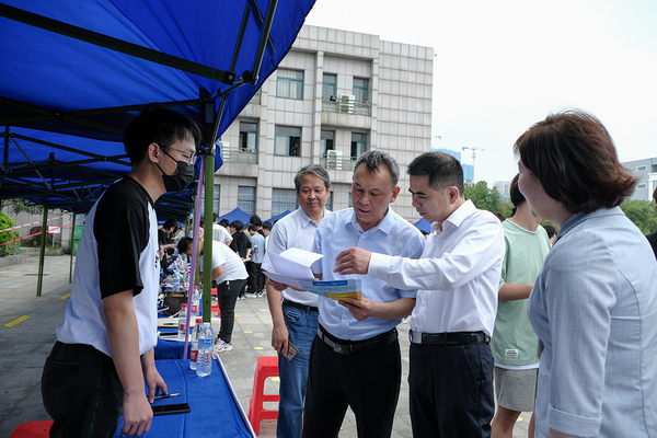 校黨委書(shū)記童宏葵、黨委副書(shū)記李克讓、安慶市人力資源和社會(huì)保障局副局長(zhǎng)方敏、市公共就業(yè)創(chuàng)業(yè)服務(wù)中心主任王中群,到雙選會(huì)現(xiàn)場(chǎng)指導(dǎo),了解學(xué)生們的求職意向和企業(yè)的用工需求。