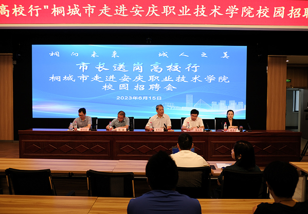 在全國上下認(rèn)真學(xué)習(xí)領(lǐng)會黨的二十大精神之際,為貫徹落實黨中央、國務(wù)院關(guān)于“穩(wěn)就業(yè)”“保就業(yè)”等相關(guān)決策部署,全面落實全國高校畢業(yè)生就業(yè)工作會議精神,整合政校企三方資源,積極引導(dǎo)畢業(yè)生本地就業(yè)創(chuàng)業(yè),進一步提升安慶職業(yè)技術(shù)學(xué)院服務(wù)安慶地方經(jīng)濟高質(zhì)量發(fā)展能力,6月15日,“市長送崗高校行”桐城市校園專場招聘會和“太愛才-職等您來”太湖縣校園專場招聘會在安慶職院圖文信息中心舉行。校黨委副書記李克讓出席活動并致辭。桐城市副市長徐良平、太湖縣縣委組織部副部長,縣人力資源和社會保障局黨組書記、局長張文斌出席活動。