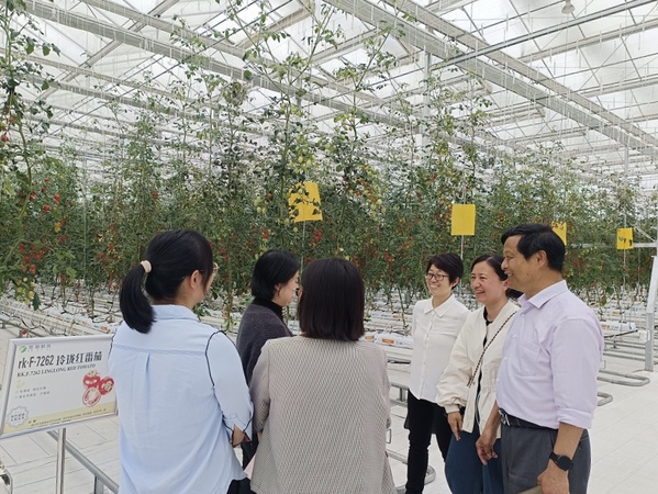 儀式結(jié)束后,潤科董事長助理帶領(lǐng)雙方參觀了公司的智能溫室大棚,企業(yè)方代表詳細(xì)闡述了當(dāng)前智慧農(nóng)業(yè)的發(fā)展趨勢和前景。李院長簡要介紹了農(nóng)林與服裝學(xué)院的基本情況,并就安徽省雙高專業(yè)建設(shè)、產(chǎn)學(xué)研合作和學(xué)生就業(yè)等工作與潤科做了深入交流,并希望與潤科開展深入合作。校企雙方經(jīng)交流探討,初步達(dá)成了今后在產(chǎn)學(xué)研、人才培養(yǎng)和學(xué)生就業(yè)創(chuàng)業(yè)等方面的合作意愿。(文:許慧慧 圖:徐基艷 審稿:劉 冬)
