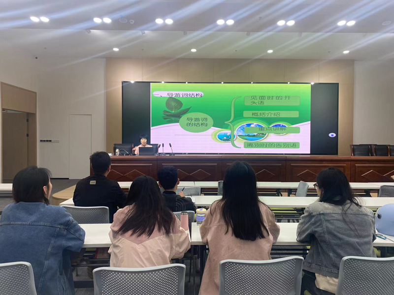 本次培訓(xùn)班為期10天,其中理論培訓(xùn)3天,根據(jù)實(shí)際情況,在原來(lái)導(dǎo)游業(yè)務(wù)、導(dǎo)游基礎(chǔ)、模擬導(dǎo)游、天柱山導(dǎo)游實(shí)務(wù)等課程基礎(chǔ)上,新增了紅十字知識(shí)及救護(hù)概論和常見急癥、意外傷害、突發(fā)事件處理等新課程,從理論到實(shí)操極大增強(qiáng)了課程實(shí)用性;景區(qū)實(shí)習(xí)5天,由有經(jīng)驗(yàn)的老導(dǎo)游帶領(lǐng)學(xué)員輪流現(xiàn)場(chǎng)實(shí)習(xí)模擬導(dǎo)游講解,地點(diǎn)涵蓋大部分潛山A級(jí)景區(qū),讓學(xué)員能以最快速度成長(zhǎng)為一名業(yè)務(wù)能力過(guò)硬的講解員;面試考核2天,內(nèi)容為形象展示、景點(diǎn)講解、才藝展示等。學(xué)校旅游專業(yè)教師葛愛云被邀請(qǐng)對(duì)學(xué)員進(jìn)行理論培訓(xùn),并作為導(dǎo)游面試評(píng)委全程參與考核。