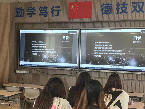6月6日中午,安慶職業(yè)技術(shù)學(xué)院管理服務(wù)學(xué)院酒店管理與數(shù)字化運(yùn)營(yíng)專業(yè)的企業(yè)課堂開講。本期企業(yè)課堂邀請(qǐng)到的主講嘉賓是上海祥源希爾頓HR劉曉雨和前廳總監(jiān)葉義軍,講座主題為《酒店數(shù)字化服務(wù)與管理》。酒店管理與數(shù)字化運(yùn)營(yíng)專業(yè)負(fù)責(zé)人陳文玲、專業(yè)課教師代表以及全體2022級(jí)、2023級(jí)酒店管理與數(shù)字化運(yùn)營(yíng)專業(yè)同學(xué)參加。此次講座以線上的形式開展,在3棟304、306、308三個(gè)教室設(shè)三個(gè)分會(huì)場(chǎng)。