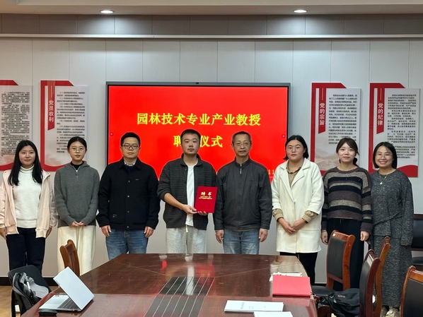 11月11日,安慶職業(yè)技術學院園林技術專業(yè)團隊在2號教學樓414室開展產業(yè)教授聘任及合作對接會議。會議邀請產業(yè)教授胡海峰出席,該校農林與服裝學院院長李進恩、教學管理負責人及園林技術專業(yè)教學團隊教師參加會議。