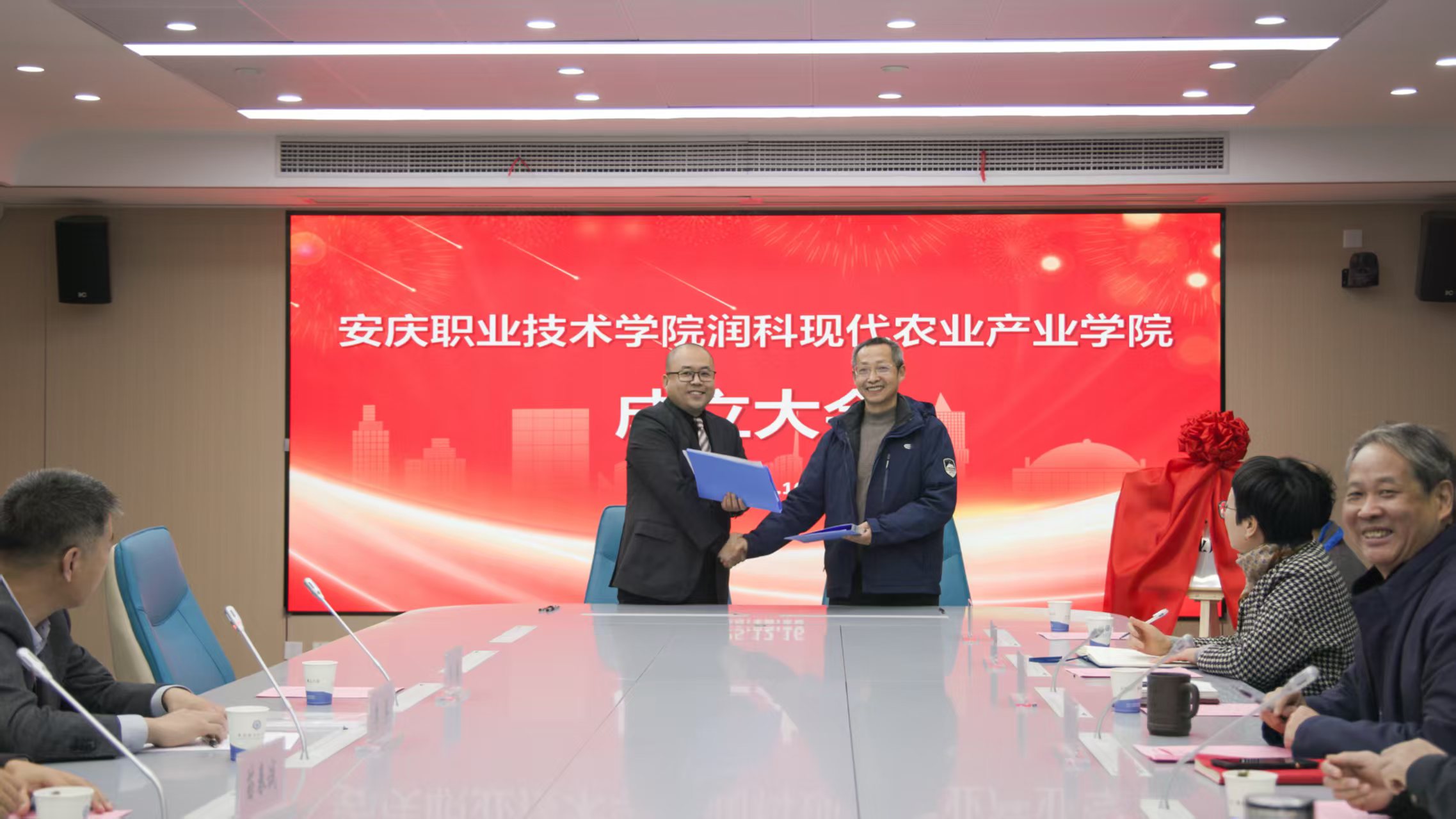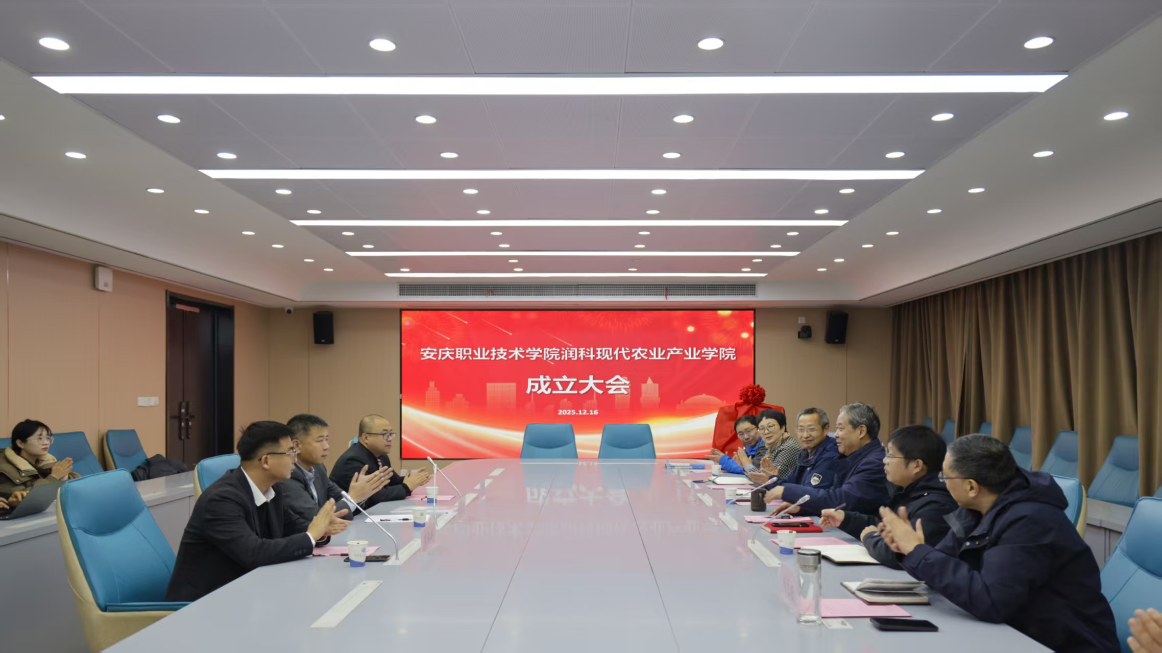 12月16日,安慶職業(yè)技術(shù)學(xué)院與安徽潤科農(nóng)業(yè)科技有限公司共建的安慶職業(yè)技術(shù)學(xué)院潤科現(xiàn)代農(nóng)業(yè)產(chǎn)業(yè)學(xué)院在校425會(huì)議室舉行揭牌儀式。安慶職院黨委副書記李克讓主持儀式。安徽潤科農(nóng)業(yè)科技有限公司董事長李兵、安慶市農(nóng)業(yè)農(nóng)村局副局長周克海出席,安徽潤科公司代表,校企合作辦、農(nóng)林與服裝學(xué)院負(fù)責(zé)人及教師代表參加。